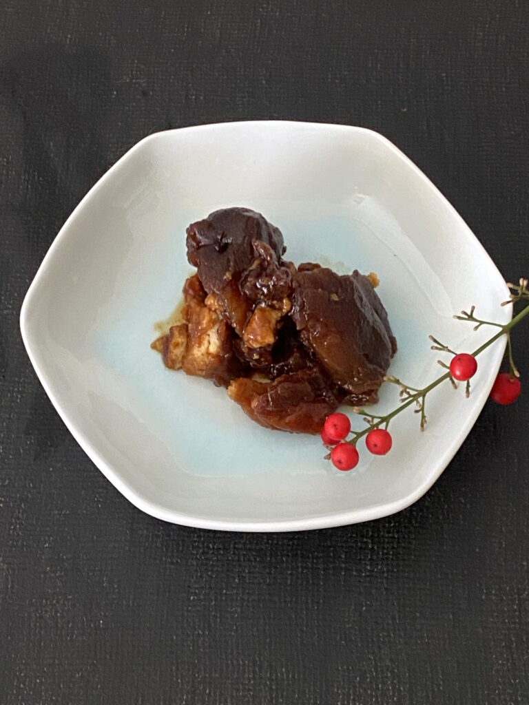 何度か作って、だいぶん近い味になったかなと思っていたところで、本家の味を再びいただくと、さすがはプロと声も出ない。側面(背後)の垂直ラインの素材はちょっと真似できないなぁと。大人に好評だったビター風味の味は、子どもたちには不評で、再度やり直すことに。正月には、小さいお重にどのように詰めるのがよいかについても考えさせられて、新たなおもしろさを感じた。形を捉えるのは奥が深い。